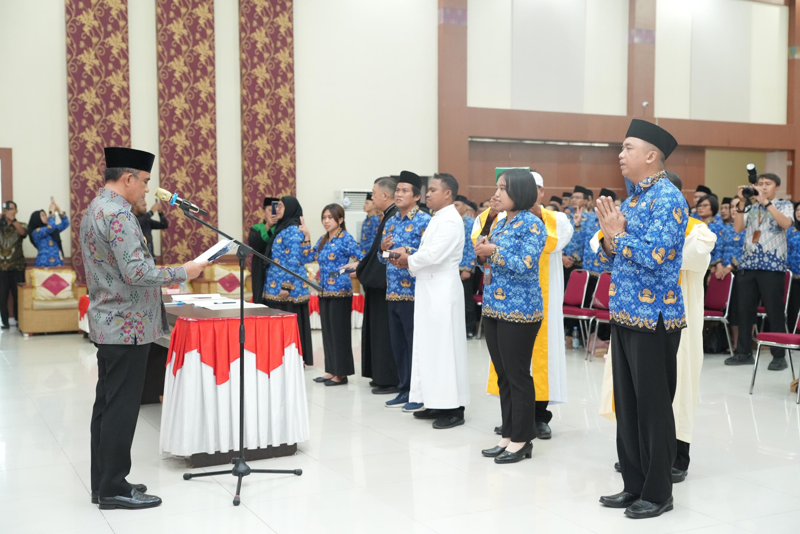 PALU – Gubernur Sulawesi Tengah, Anwar Hafid, memimpin pengambilan sumpah dan janji Aparatur Sipil Negara (ASN) Pemerintah Provinsi Sulawesi Tengah Tahun 2025 di Gedung Pogombo, Kamis (4/12/2025). Sebanyak kurang lebih 8.000 ASN mengikuti acara tersebut, baik secara langsung maupun lewat siaran daring dari seluruh OPD.
