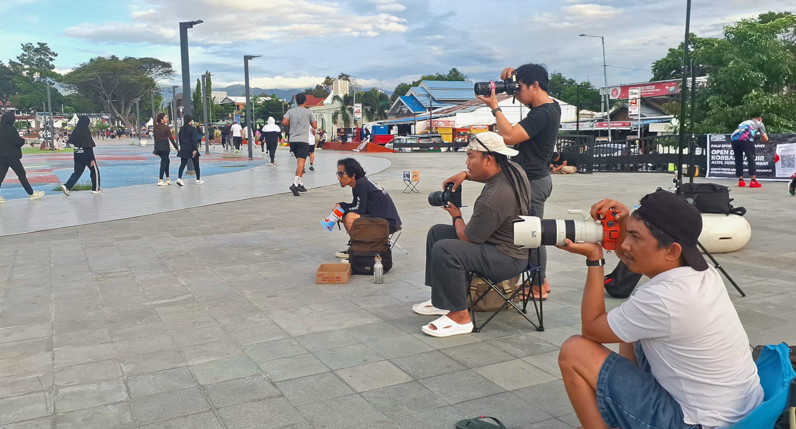 PALU — Lapangan Vatulemo Palu mendadak menjadi ruang solidaritas. Ratusan warga yang datang untuk berolahraga diajak berbagi kepedulian melalui cara unik: berdonasi sambil diabadikan momennya oleh anak-anak fotografer.