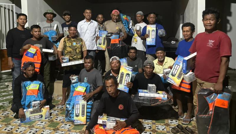 Perlengkapan yang diberikan meliputi alat tangkap ikan, lampu tenaga surya, senter waterproof, dan pelampung.