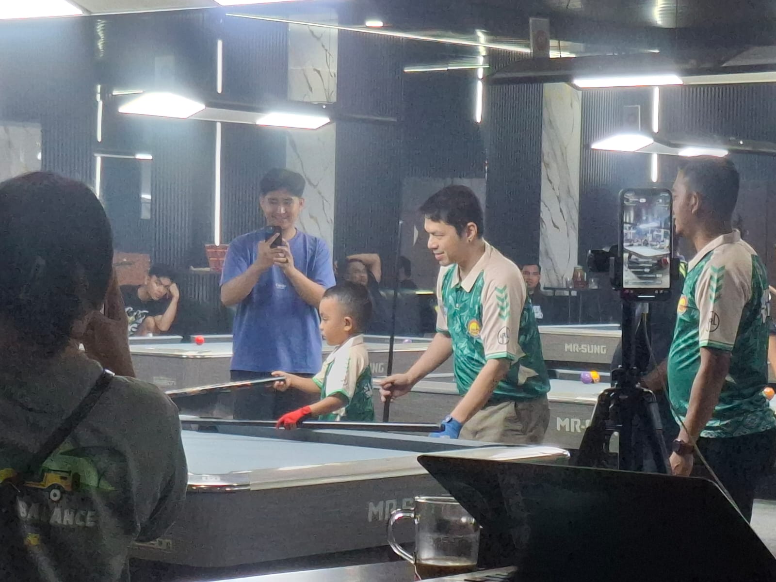 PALU – Pertandingan persahabatan (ekshibisi) antara Ketua Umum Persatuan Olahraga Biliar Seluruh Indonesia (POBSI) Provinsi Sulawesi Tengah dan atlet cilik asal Kabupaten Tolitoli, Fajar Al Amri (5), berlangsung seru di Club Biliar Breakshoot, Senin malam (16/2).
