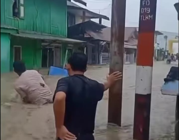 Sejak pagi, air mulai merendam jalan utama dan rumah warga, hingga sebagian aktivitas masyarakat terhenti. Kondisi tersebut membuat banyak warga khawatir karena ketinggian air terus naik, seiring hujan yang belum menunjukkan tanda mereda.