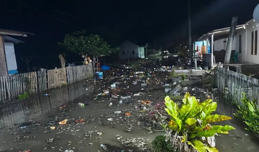 DONGGALA – Banjir rob melanda Desa Walandano, Kecamatan Balaesang Tanjung, Ahad (04/01) sore.