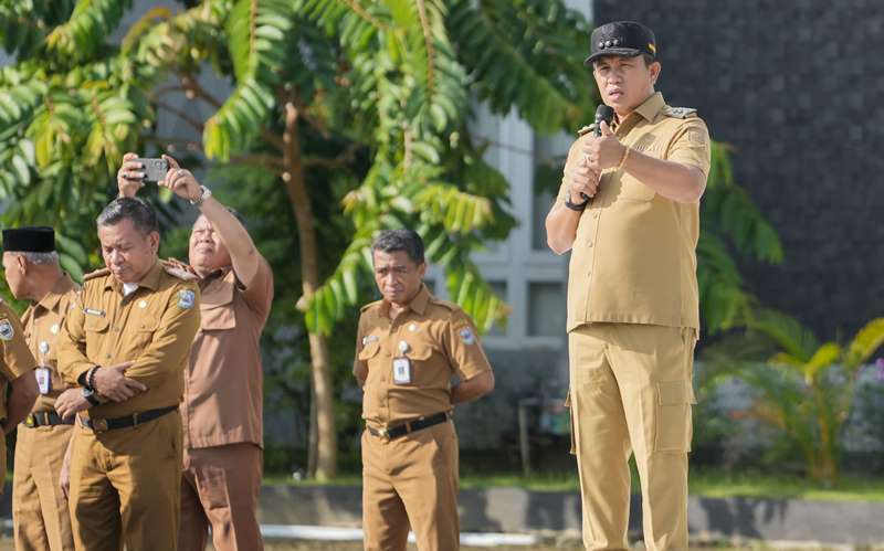 “Mana itu daerah kaya? Coba kita cubit diri kita, mana itu kata-kata daerah yang kaya,” ujarnya di hadapan peserta apel.