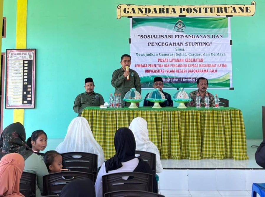 LPPM melalui Pusat Layanan Kesehatan UIN Datokarama, kata Sahran, belum lama ini melaksanakan sosialisasi pencegahan dan penanganan stunting di Desa Gio Timur, Kecamatan Moutong, Kabupaten Parigi Moutong.