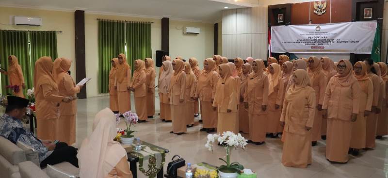 PALU – Dharma Wanita Persatuan (DWP) Kementerian Agama (Kemenag) Kabupaten/Kota se-Sulawesi Tengah (Sulteng) masa bakti 2024-2029 resmi dikukuhkan, di Aula Kantor Wilayah (Kanwil) Kemenag Provinsi Sulteng, Jumat (13/2).