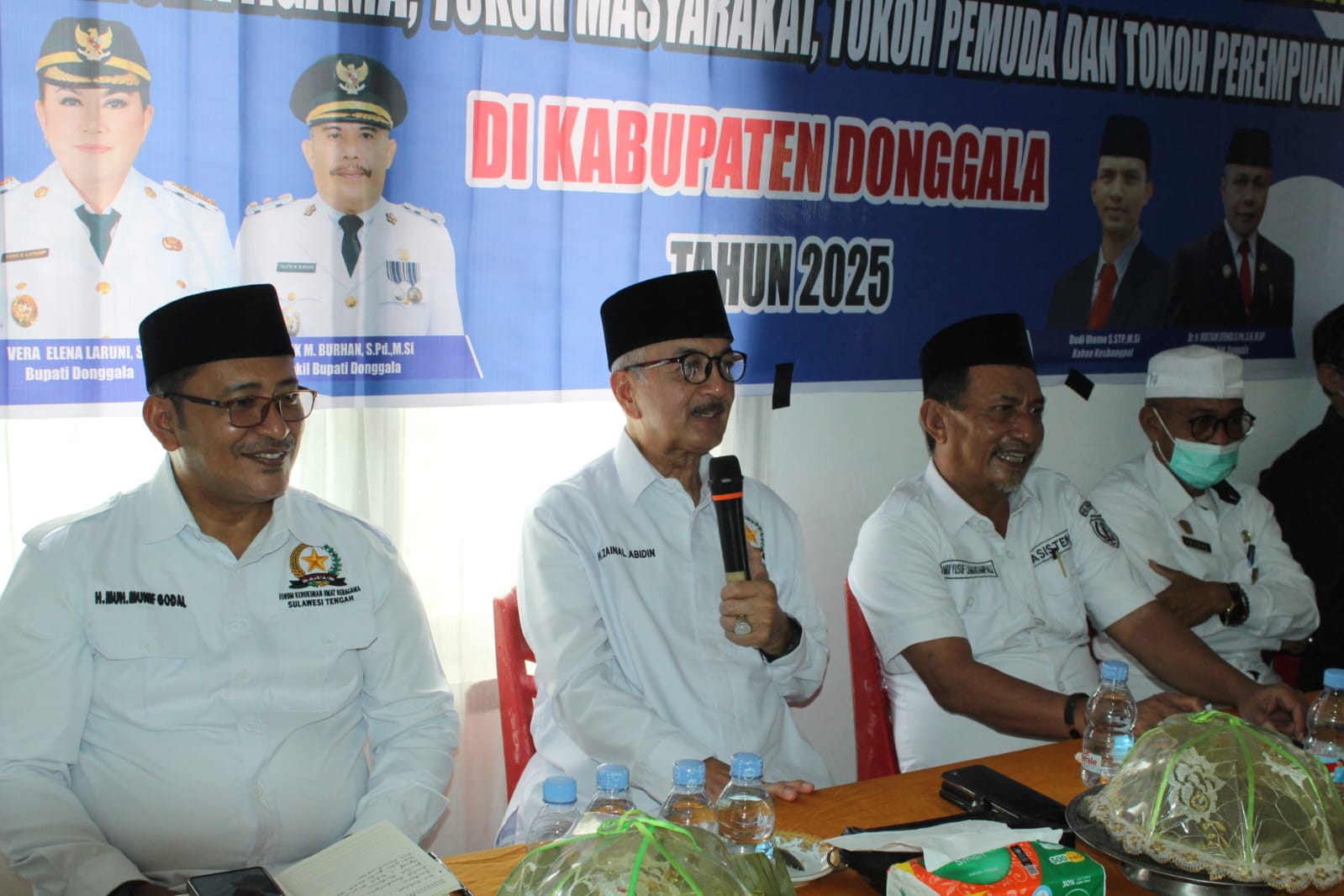 Donggala – Ketua Forum Kerukunan Umat Beragama (FKUB) Sulawesi Tengah, Prof. Dr. KH. Zainal Abidin, M.Ag., mengingatkan tantangan komunikasi agama di era globalisasi dalam Sosialisasi Penguatan Moderasi Beragama di Aula Kantor Kecamatan Banawa Selatan, Desa Watatu, Rabu, (26/11) pagi.