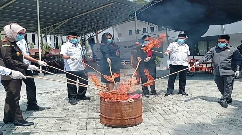 “Pemusnahan barang bukti hari ini merupakan pesan tegas kepada masyarakat,” katanya.