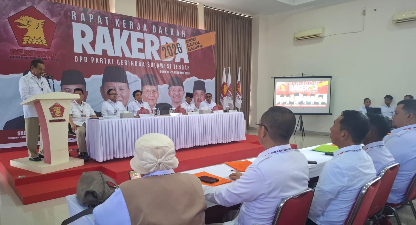 PALU – Partai Gerindra Provinsi Sulawesi Tengah (Sulteng) menegaskan penertiban dan penguatan struktur organisasi hingga tingkat ranting dalam Rapat Kerja Daerah (Rakerda) Tahun 2026 yang digelar, di Kantor DPD Gerindra Sulteng, Jalan Elang, Kota Palu, Sabtu hingga Ahad (14-15/2).