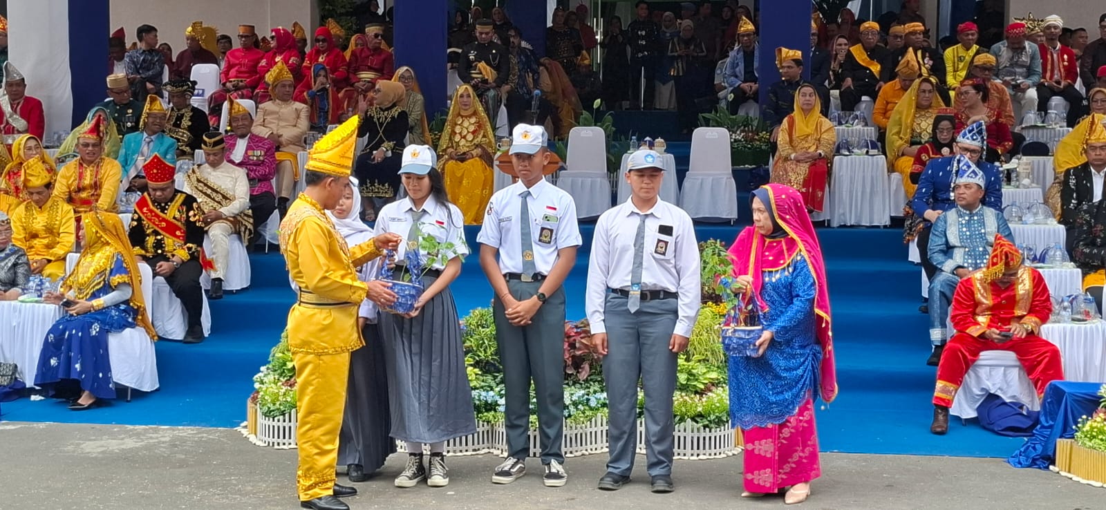 PALU -Gubenur Sulawesi Tengah Dr.Anwar Hafid, sebelum memulai sambutannya pada upacara hari ulang tahun provinsi Sulteng ke-62 tahun Senin (13/4-2026) di halaman kantor Gubernur dari atas mimbar menyampa para guru, siswa – siswi SMA dan petugas kesehatan di 12 kabupaten dan satu kota.