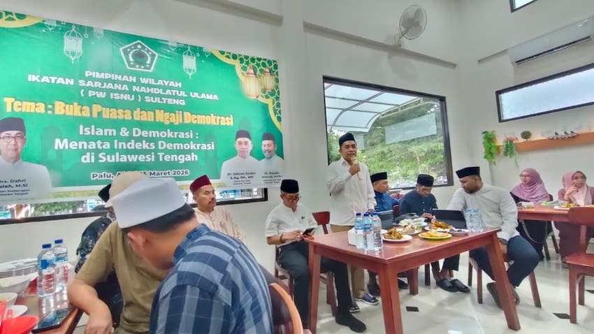 Ketua PW ISNU Sulteng, Dr. Sahran Raden, dalam pemaparannya menyampaikan bahwa gagasan mengenai demokrasi sebenarnya telah lama berkembang dalam tradisi pemikiran Islam, jauh sebelum konsep demokrasi berkembang di dunia Barat pada abad ke-18.