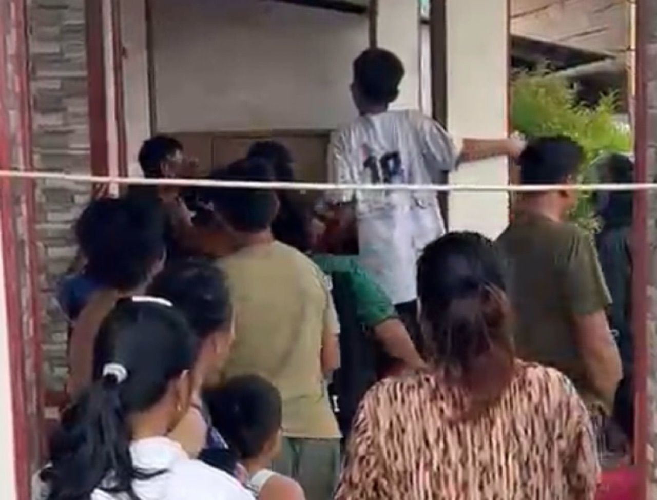 Dalam rekaman berdurasi sekitar satu menit, terlihat suasana panik di lokasi kejadian dengan sejumlah warga berkumpul di sekitar tempat kejadian perkara.