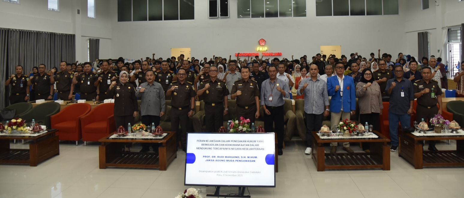 PALU – Universitas Tadulako (Untad) menggelar kuliah umum bertajuk “Peran Kejaksaan dalam Penegakan Hukum yang Berkeadilan dan Berkemanfaatan dalam Mendukung Tercapainya Negara Kesejahteraan” di Aula Fakultas Keguruan dan Ilmu Pendidikan (FKIP), Rabu (4/12).