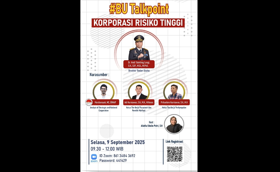 Kegiatan tersebut berlangsung secara hybrid (tatap muka dan daring), sehingga dapat diikuti oleh peserta dari berbagai daerah tanpa batasan geografis. Talkpoint dibuka langsung oleh Direktur Badan Usaha, Dr. Andi Taletting Langi, dengan menghadirkan sejumlah narasumber berkompeten di bidangnya.