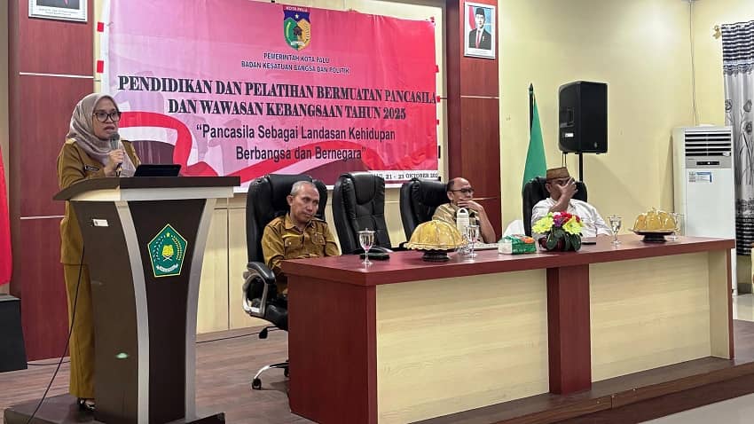 PALU – Badan Kesatuan Bangsa dan Politik (Kesbangpol) Kota Palu mengelar kegiatan pendidikan dan pelatihan bermuatan Pancasila dan wawasan kebangsaan, Selasa (21/10).
