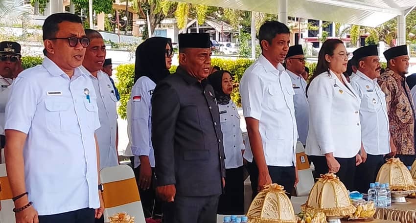DONGGALA – Ketua DPRD Donggala, Moh Taufik mengikuti kegiatan penyerahan Surat Keputusan (SK) pengangkatan Pegawai Pemerintah dengan Perjanjian Kerja (PPPK) di halaman Kantor Bupati Donggala, Rabu (12/11).