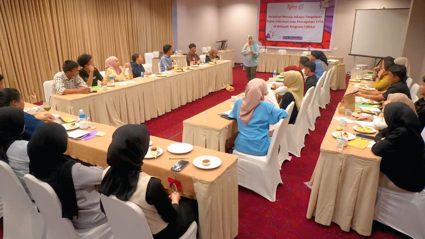 Selama tiga hari, remaja mengikuti sesi diskusi dan praktik terkait pengelolaan posko informasi yang aman dan ramah perempuan serta anak, komunikasi yang sensitif gender dan usia, serta pengenalan tanda-tanda kekerasan fisik, emosional, dan perilaku, termasuk perundungan dan kekerasan siber, kekerasan dalam pacaran, serta pelecehan.
