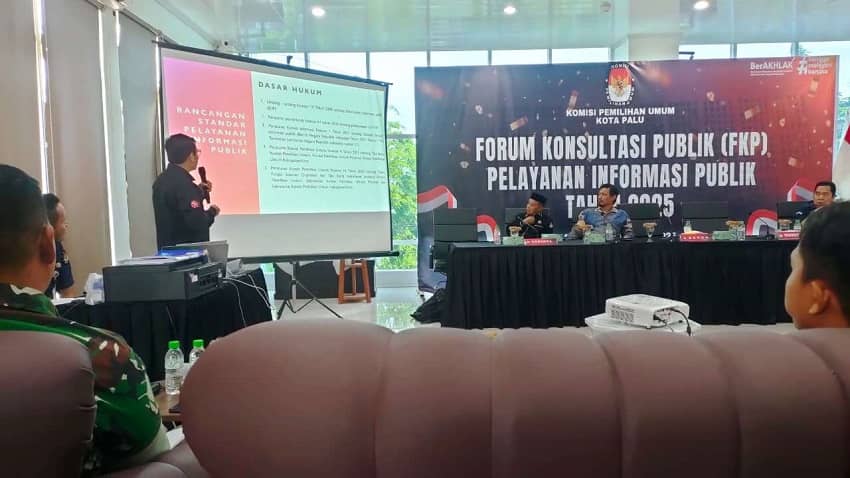 PALU – Komisi Pemilihan Umum (KPU) Kota Palu menggelar kegiatan forum konsultasi publik (FKP) terkait standar pelayanan informasi publik KPU, di Kantor KPU Kota Palu, Selasa (11/11).