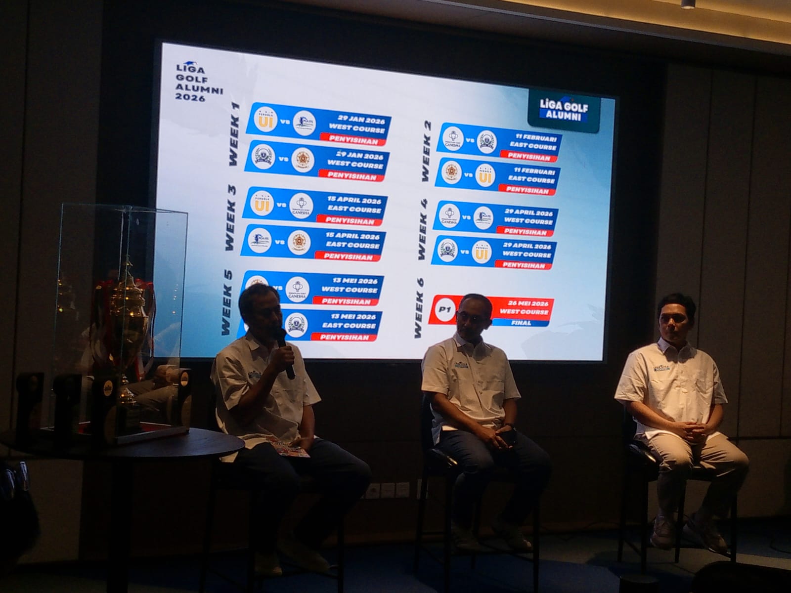 Liga Golf Alumni 2026 merupakan pengembangan dari turnamen Tri Warga yang selama ini melibatkan alumni ITB, UI, dan UGM. Tahun ini, kompetisi diperluas dengan melibatkan lima perguruan tinggi, yakni ITB, UI, UGM, ITS, dan IPB, dalam format liga yang lebih terstruktur dan berkelanjutan.