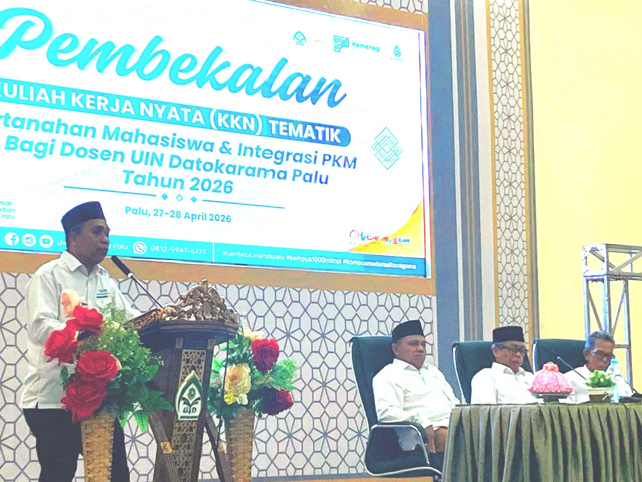 PALU – Lembaga Penelitian Pengabdian Masyarakat (LPPM) Universitas Islam Negeri (UIN) Datokarama melaksanakan pembekalan bagi mahasiswa sebelum turun lapangan atau turun ke masyarakat untuk melaksanakan Kuliah Kerja Nyata (KKN) Tematik Pertanahan.