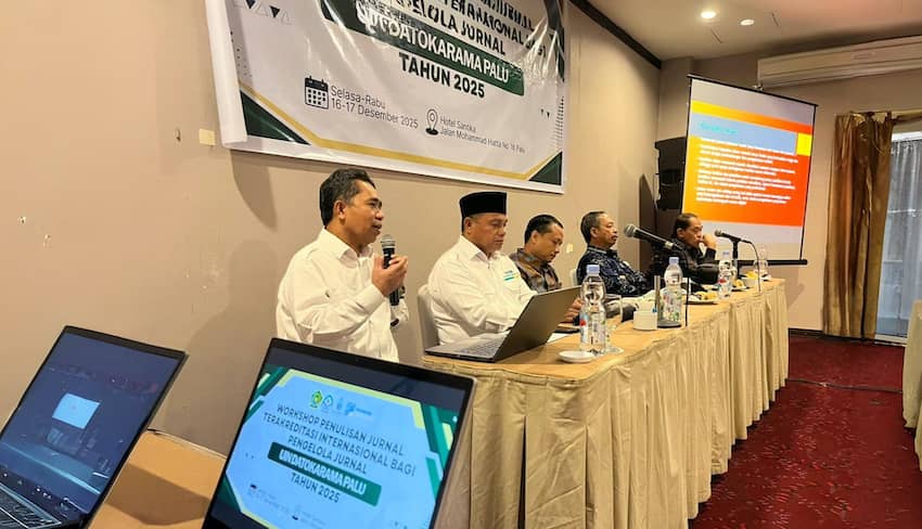 PALU – Universitas Islam Negeri (UIN) Datokarama Palu, melalui Lembaga Penelitian dan Pengabdian kepada Masyarakat (LPPM), melaksanakan Workshop Penulisan Jurnal Terakreditasi Internasional bagi Pengelola Jurnal selama dua hari, pada 16–17 Desember 2025, di Palu.