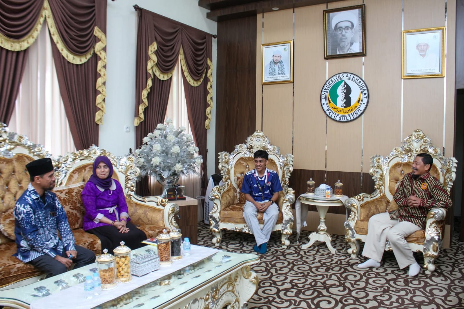 PALU – Rektor Universitas Alkhairaat, (UNISA) Palu, Dr. Muhammad Yasin, menerima atlet pencak silat asal Sulawesi Tengah yang juga merupakan mahasiswa Fakultas Perikanan (Faperik) UNISA Palu. Dia adalah Rahmat Hidayat, yang kembali menorehkan prestasi yang membanggakan dilevel Nasional.