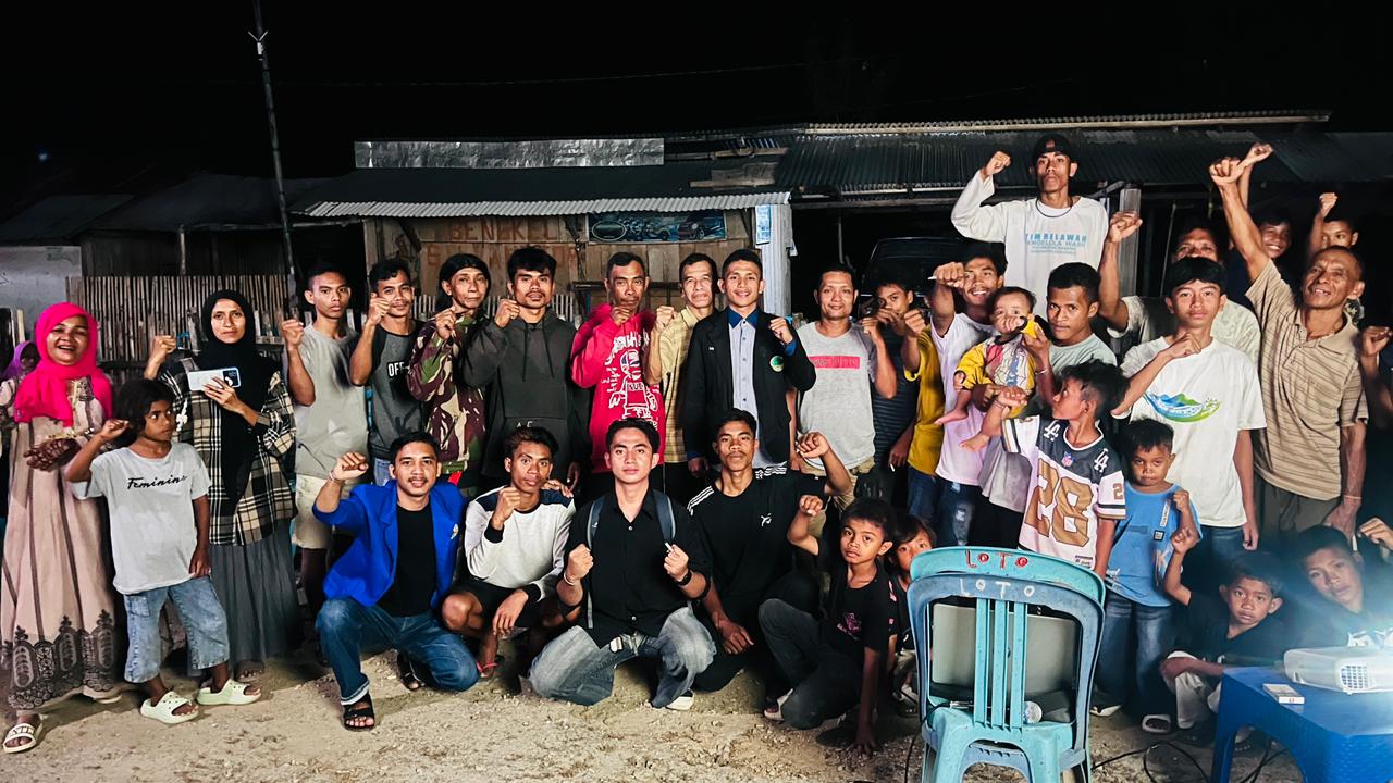 PALU- Himpunan Mahasiswa Program Akhwalus Syakhsiyyah Universitas Alkhairaat (Unisa) Palu menggelar nonton bersama (Nobar) dan diskusi Film dibuat oleh 4 jurnalis ekspedisi Indonesia baru “Kiamat Pulau Kecil”, di Aula Kelurahan Loli Tasiburi, Kecamatan Banawa, Kabupaten Donggala, Selasa malam (8/4).