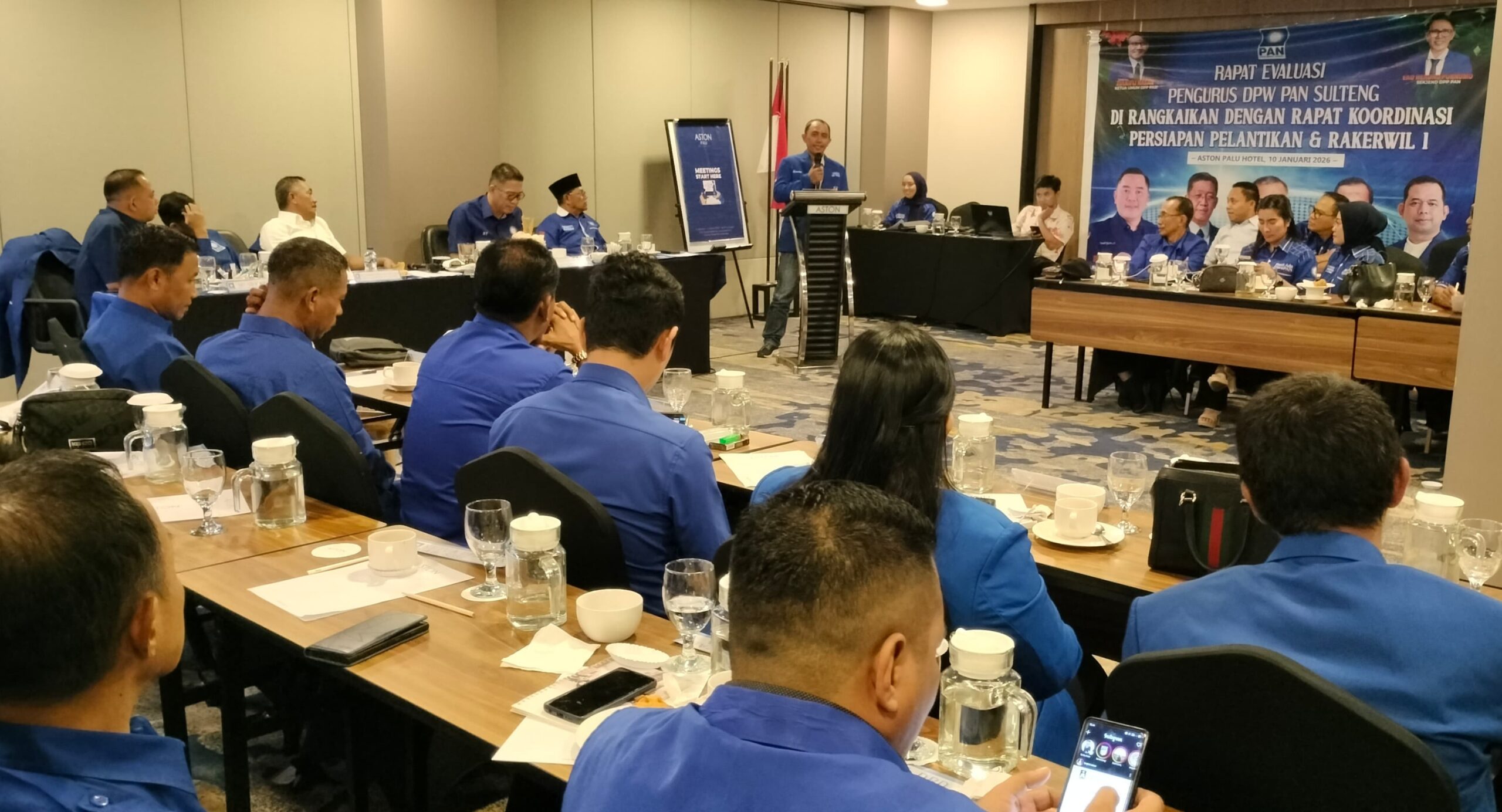 PALU – Dewan Pimpinan Wilayah (DPW) Partai Amanat Nasional (PAN) Sulawesi Tengah (Sulteng) menggelar rapat evaluasi pengurus yang dirangkaikan dengan rapat koordinasi persiapan pelantikan serta Rapat Kerja Wilayah (Rakerwil) I, di Aston Hotel, Sabtu (10/1).