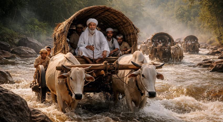 Di luar nalar, ketika mereka mulai melintas, air yang sebelumnya mengamuk mendadak surut. Tidak satu pun barang mereka yang basah. Begitu rombongan selesai menyeberang, air kembali meluap, menutup jalan bagi siapa pun yang datang setelahnya.