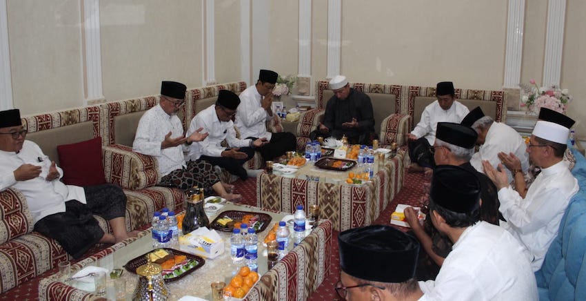 Pertemuan berlangsung dalam suasana hangat dan penuh keakraban, dengan pembahasan yang banyak menyinggung perjalanan dakwah Habib Idrus bin Salim Aljufri.