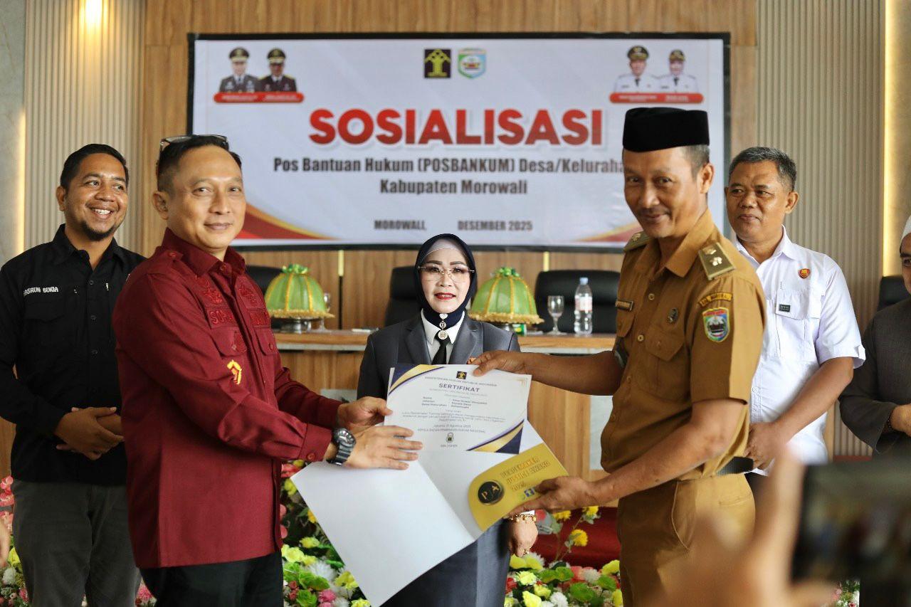 MOROWALI – Pemerintah Kabupaten Morowali bersama Kantor Wilayah Kementerian Hukum Sulawesi Tengah (Kanwil Kemenkum Sulteng) terus memperkuat komitmen dalam membangun budaya hukum hingga ke tingkat desa dan kelurahan. Komitmen tersebut kembali ditegaskan melalui kegiatan Sosialisasi Pos Bantuan Hukum (Posbankum) dilaksanakan di Aula Hotel Soldadu, Bungku, Kabupaten Morowali, Kamis (4/12).