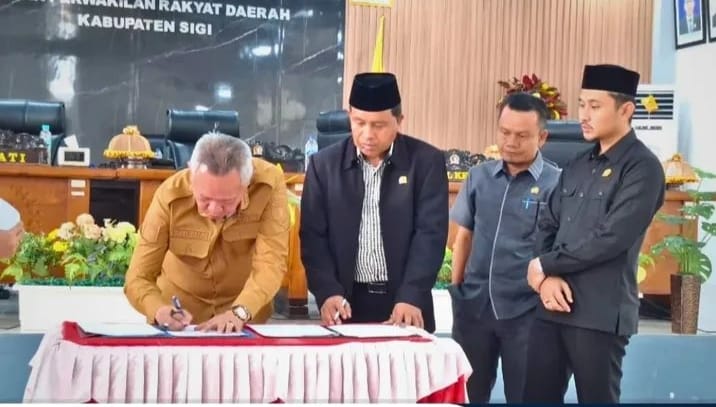 SIGI – Pemerintah Kabupaten (Pemkab) Sigi bersama Dewan Perwakilan Rakyat Daerah (DPRD) Kabupaten Sigi resmi mengesahkan Rancangan Peraturan Daerah (Ranperda) tentang Penyelenggaraan Program Jaminan Sosial Ketenagakerjaan menjadi Peraturan Daerah (Perda). Pengesahan itu dilakukan dalam rapat paripurna DPRD Sigi, Senin (20/10).