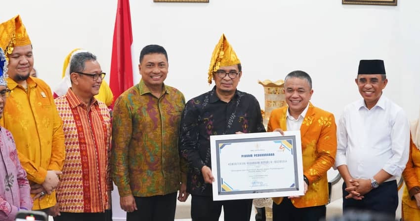 PALU – Wali Kota Palu, Hadianto Rasyid, menerima sertifikat lahan hibah dari Kementerian Keuangan (Kemenkeu), di Rumah Jabatan Wali Kota Palu, Sabtu (27/09).