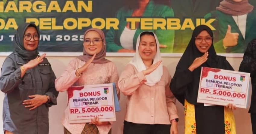 PALU – Wakil Wali Kota Palu, Imelda Liliana Muhidin, menyerahkan penghargaan Pemuda Pelopor Terbaik Kota Palu Tahun 2025, Rabu (26/11).