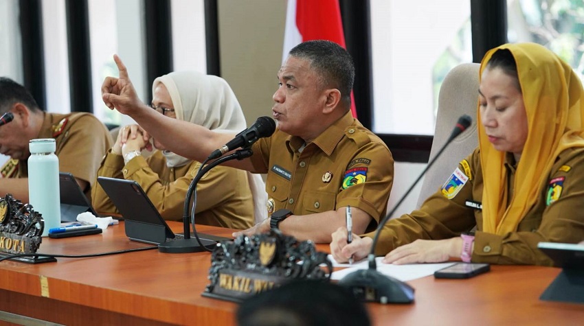 PALU – Wali Kota Palu, Hadianto Rasyid, didampingi Wakil Wali Kota, Imelda Liliana Muhidin, memimpin rapat terkait penanganan stunting, di Ruang Rapat Bantaya, Kantor Wali Kota Palu, Senin (22/09).
