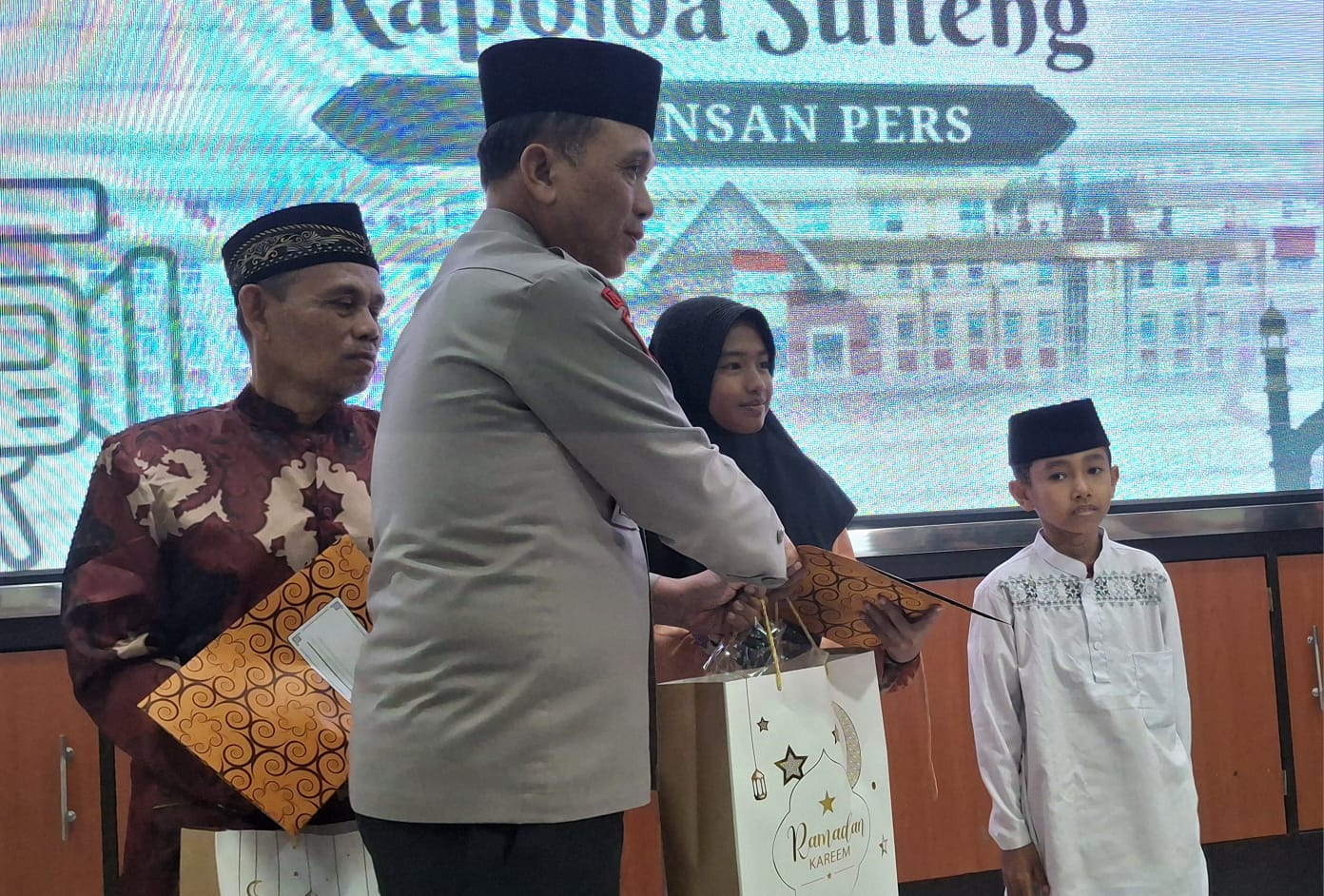 Pemberian santunan dan bingkisan diserahkan langsung oleh Kepala Kepolisian daerah (Kapolda) Sulteng Irjen Pol Endi Sutendi, terhadap perwakilan panti asuhan Nurul Falaq Kota Palu.