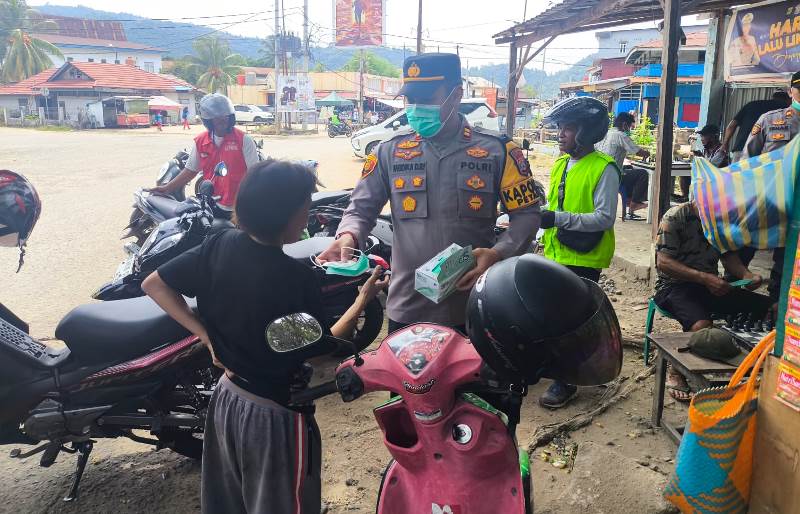 MORUT – Kepolisian Resor (Polres) Morowali Utara (Morut) membagikan masker secara gratis kepada masyarakat guna mengantisipasi meningkatnya kasus Infeksi Saluran Pernapasan Akut (ISPA), khususnya di wilayah Kecamatan Petasia dan Petasia Barat.