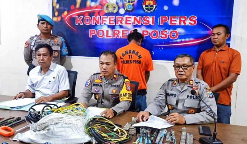 POSO – Kepolisian Sektor (Polsek) Pamona Timur menangkap seorang pria berinisial FK (31) yang diduga mencuri kabel tower jaringan Telkomsel di Desa Petiro, Kecamatan Pamona Timur, Kabupaten Poso, Sulawesi Tengah.