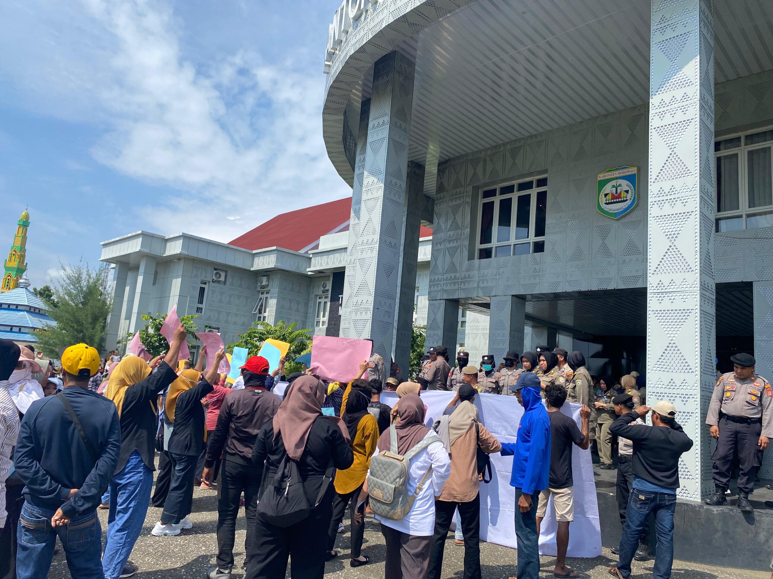 Koordinator Aksi, Ardiansyah menyampaikan, penerbitan SK tersebut dianggap tidak sesuai prosedur. Sebab belum ada surat resmi penonaktifan atau pemberhentian kepala desa sebelumnya. Selain itu, terdapat surat pencabutan permohonan pengunduran diri kepala desa.