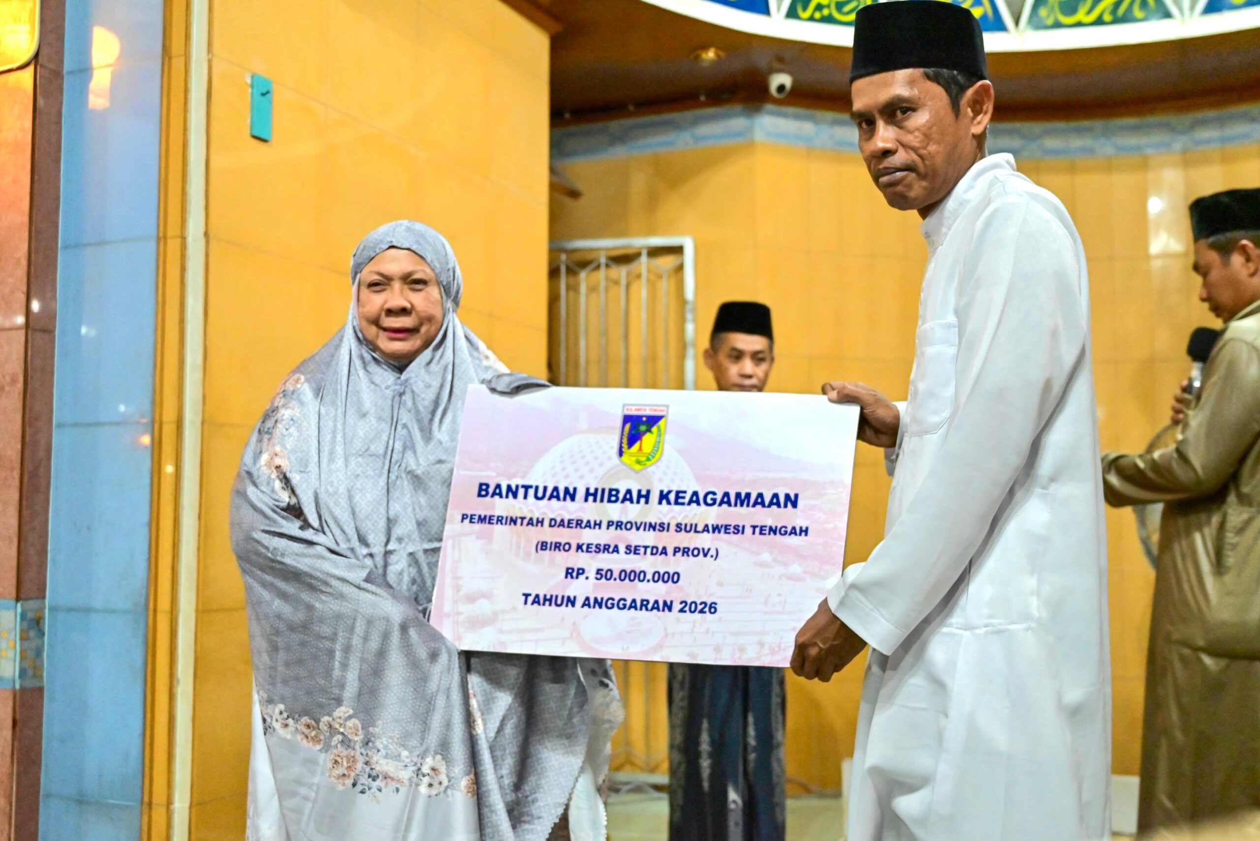 Dalam rangkaian kegiatan tersebut, Pemerintah Provinsi Sulawesi Tengah turut menyerahkan bantuan berupa Al-Qur’an kepada pengurus masjid serta sumbangan dari Gubernur sebagai bentuk dukungan terhadap kegiatan keagamaan masyarakat.