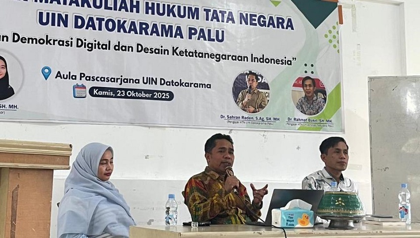 Hal itu disampaikannya dalam seminar mata kuliah Hukum Tata Negara bertema “Tantangan Demokrasi Digital dan Desain Ketatanegaraan Indonesia” yang digelar di Gedung Study Center UIN Datokarama Palu, Kamis (23/10).