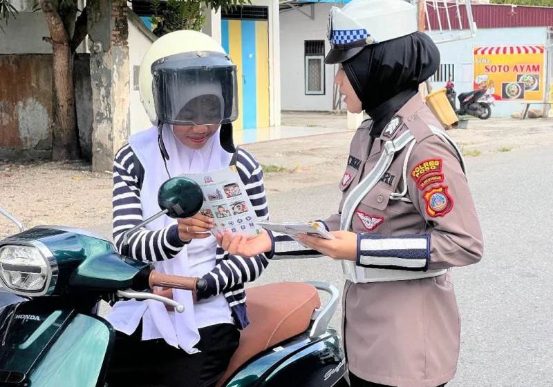 Selain membagikan brosur, petugas juga mengajak para pengendara untuk menjadi pelopor keselamatan berlalu lintas dan saling mengingatkan antar pengguna jalan.