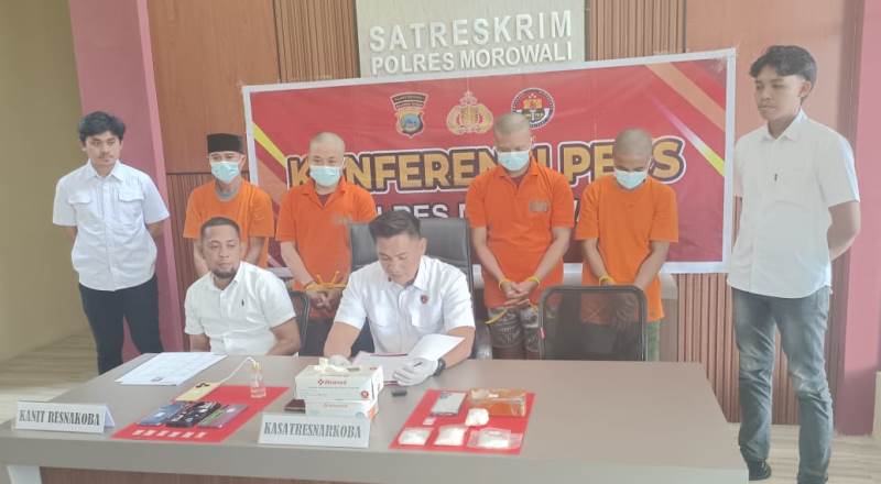 “Dari hasil penggeledahan, anggota kami berhasil mengamankan empat orang terduga pengguna dan pengedar narkotika jenis sabu beserta barang buktinya,” ujar IPTU Lukman saat menggelar konferensi pers di Mapolres Morowali, Rabu (7/1).