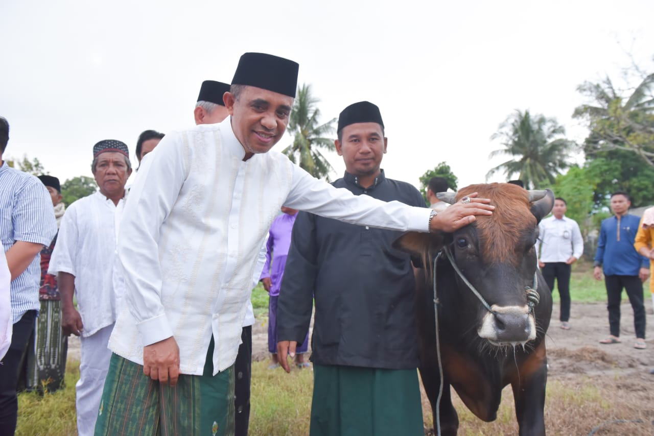 Usai sholat, Menteri Iftitah menyerahkan sapi kurban pemberian dari Presiden Prabowo Subianto untuk disembelih, dilanjutkan silaturahmi dan dialog bersama warga transmigran serta peninjauan ke lokasi industri bawang goreng dan penggemukan sapi.