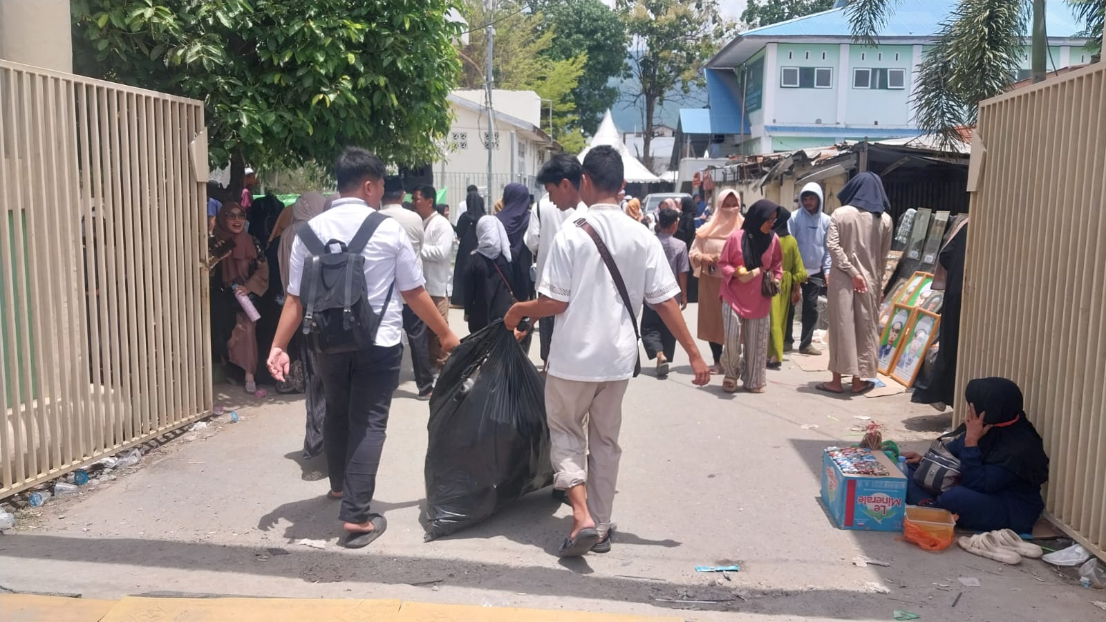 Pantauan media.alkhairaat di tengah berlangsungnya kegiatan para siswa mulai memungut sampah berupa bekas makanan dan minuman yang ditinggalkan oleh jemaah. Mereka tampak bekerja sama membawa kantong plastik besar, menyisir area jalan hingga sekitar lokasi kegiatan.