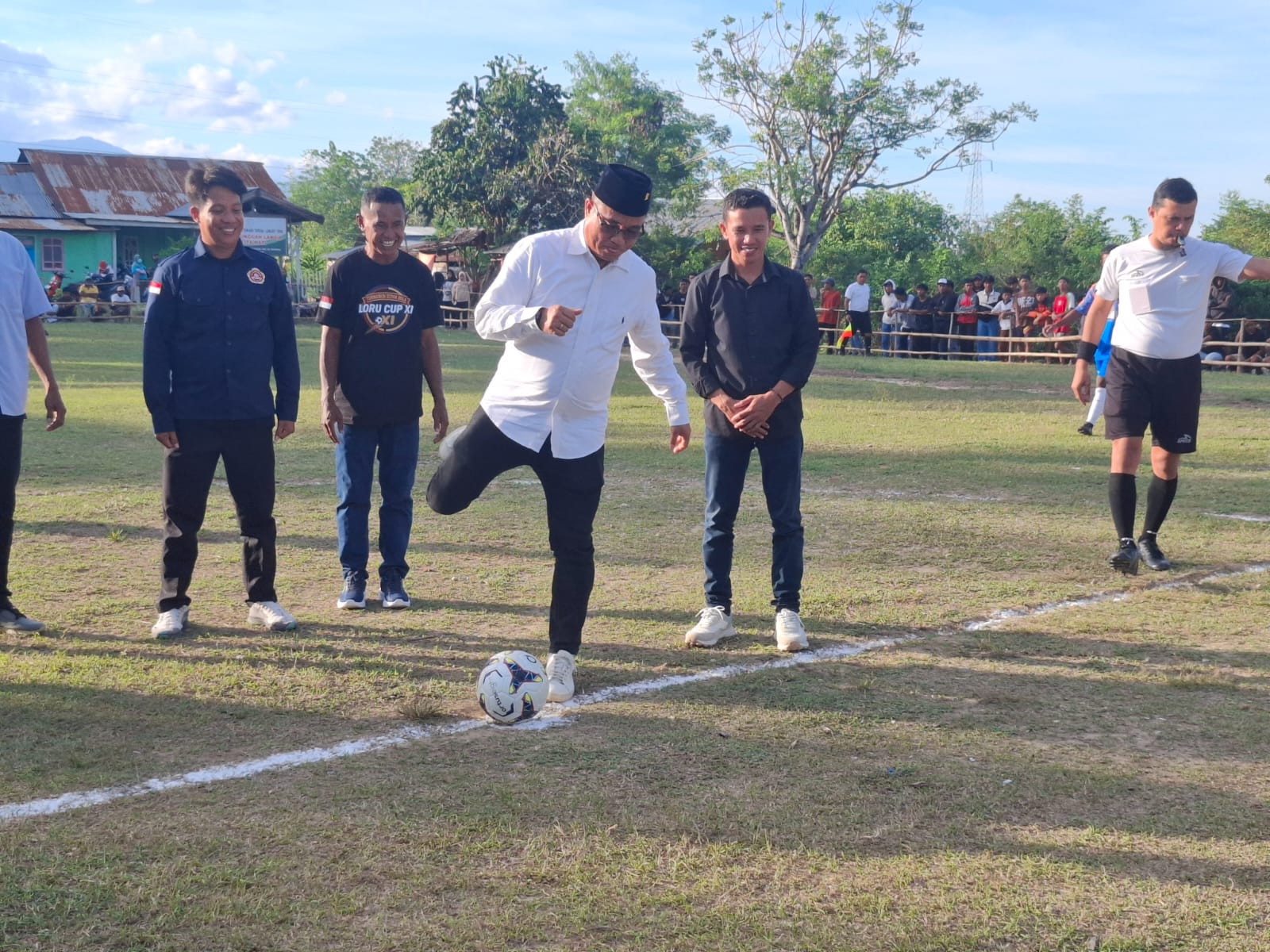 Pembukaan Loru Cup XI ditandai dengan tendangan pertama oleh Wabup Samuel yang disaksikan pemerintah desa, pelatih, manajer tim, dan warga yang memadati area lapangan.
