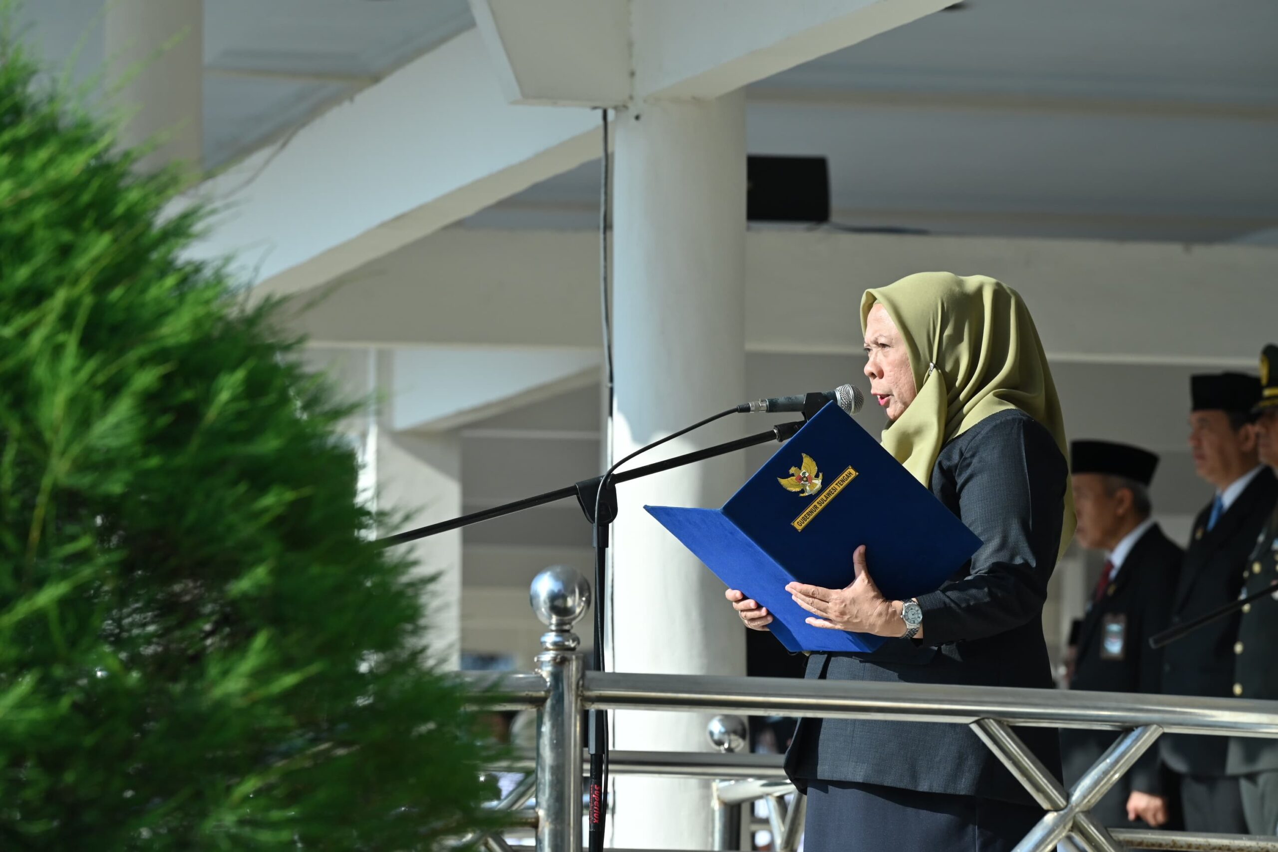Upacara yang mengusung tema “Pancasila Perekat Bangsa Menuju Indonesia Raya” berlangsung khidmat, dihadiri oleh jajaran pimpinan OPD, unsur Forum Koordinasi Pimpinan Daerah (Forkopimda), TNI-Polri, ASN, serta pelajar.