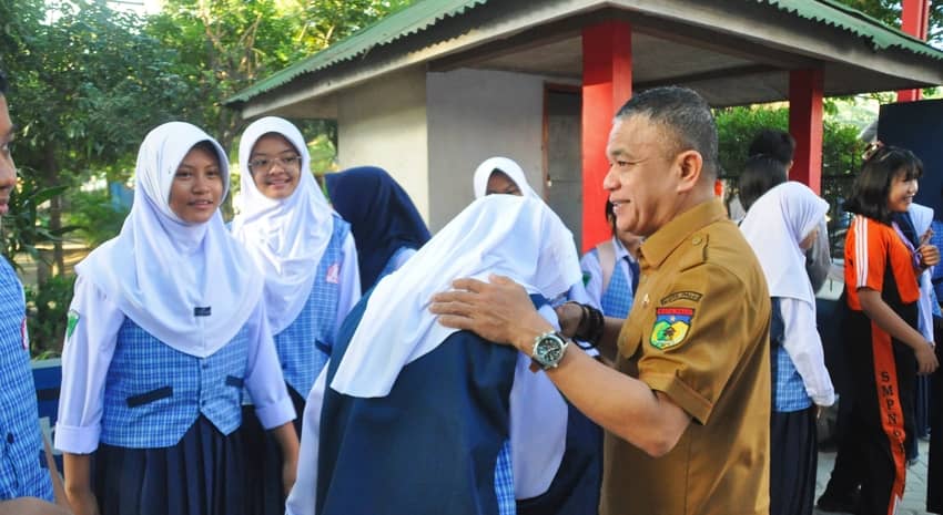 Dalam kegiatan tersebut, Wali Kota Palu Hadianto Rasyid berkesempatan menyapa para siswa dan guru SMPN 6 Palu.