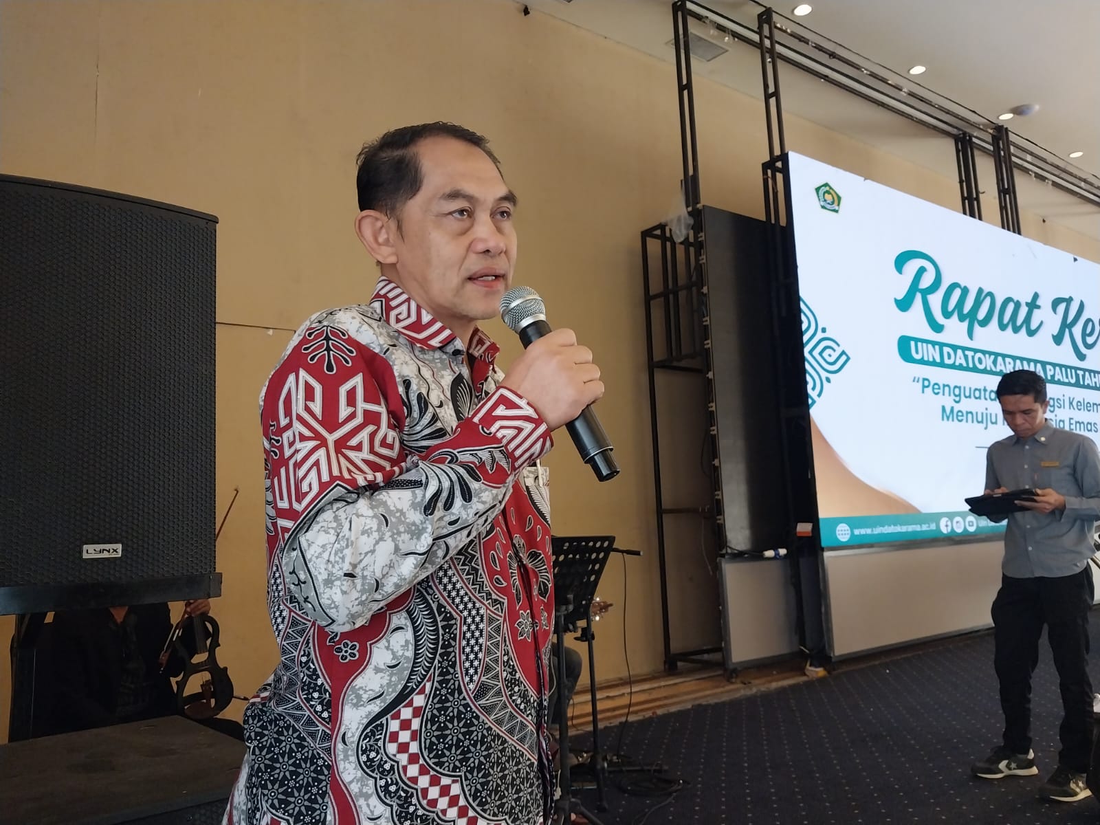 Rapat Kerja UIN Datokarama yang diselenggarakan mulai tanggal 8 sampai dengan 10 April 2026 mengusung tema “Penguatan distingsi kelembagaan menuju Indonesia emas 2045”.