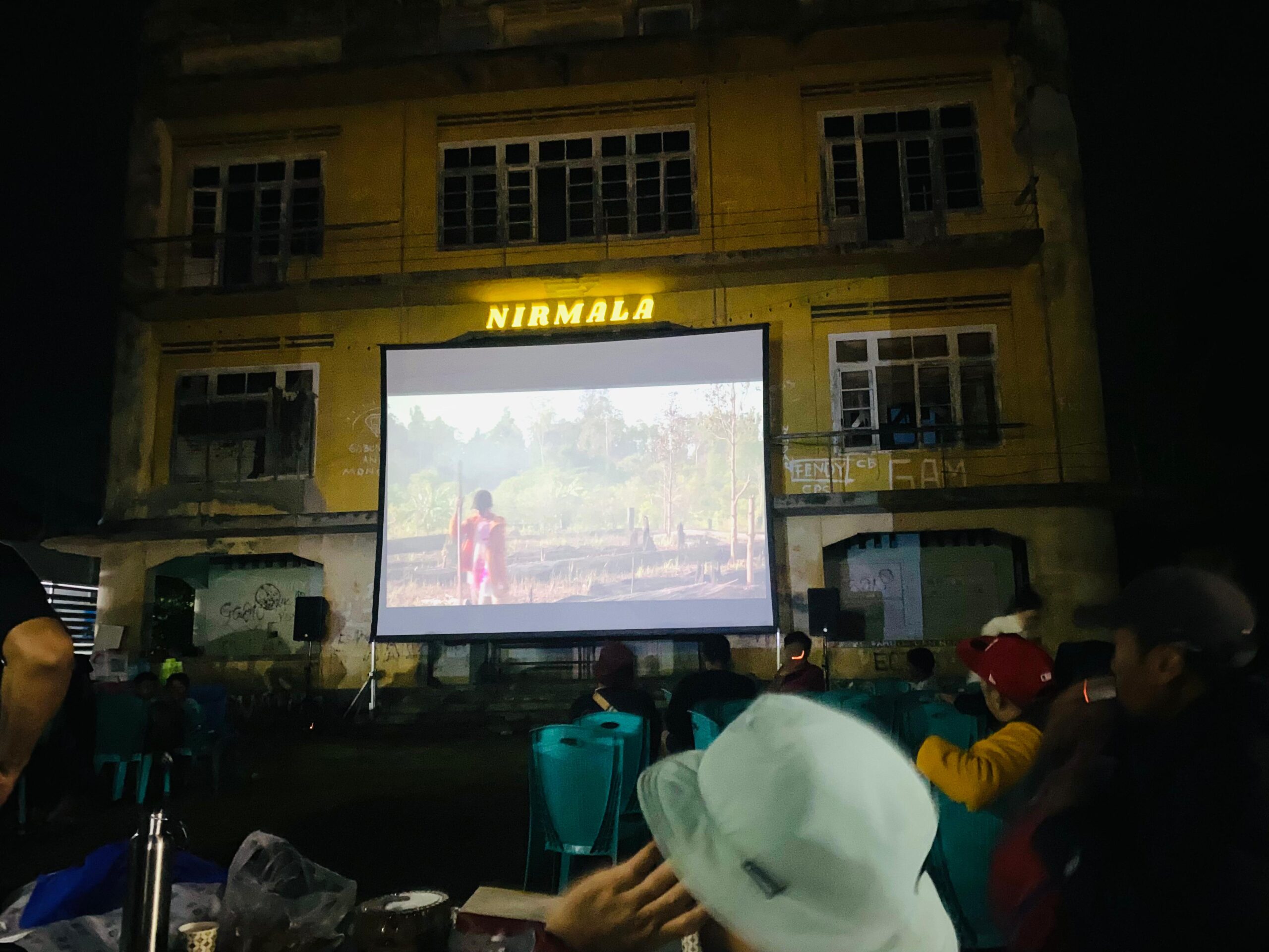 Terlihat, warga yang tinggal dekat dengan lokasi Bioskop Nirmala antusias nonton bareng (nobar) pemutaran film, dan mengaku mengenang masa lalu.