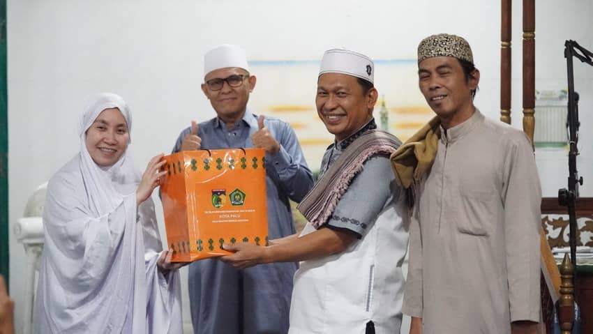 Usai memberikan sambutan, Wakil Wali Kota Imelda berkesempatan menyerahkan bingkisan Ramadhan kepada imam Masjid Al-Muttaqin sebagai bentuk perhatian dan dukungan dari Pemerintah Kota Palu.